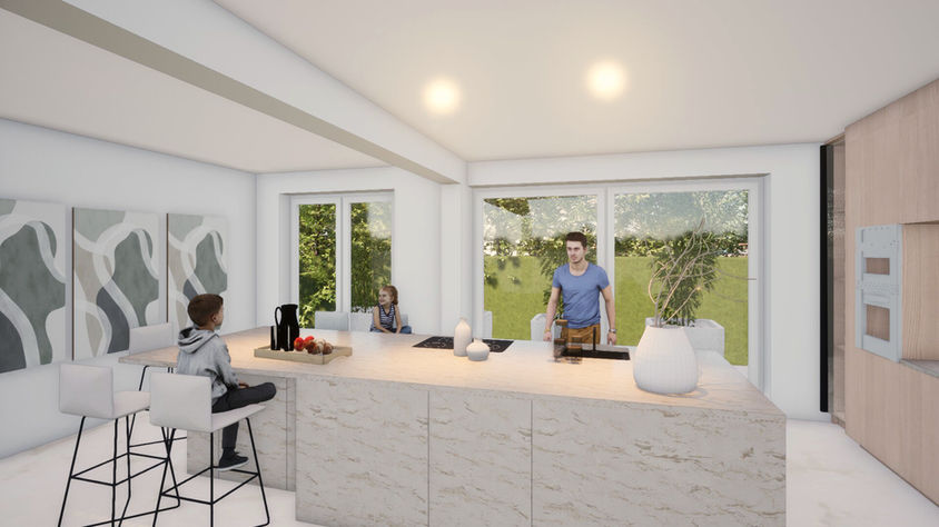 Beauftragt wurde die Erstellung mehrerer innenarchitektonischer Konzepte für die Umgestaltung eines Wohn-/ Essbereiches und der nebenliegenden Küche eines Bestandsgebäudes in Aachen.